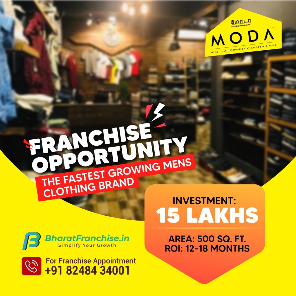 Do give the Bharath franchise a call today at 8248434001 to connect with MODA – the men’s clothing franchise and set up your outlet.